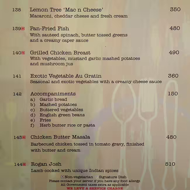 Citrus Café offers a multi-cuisine menu including Indian, European, American, and pan-Asian cuisine.
