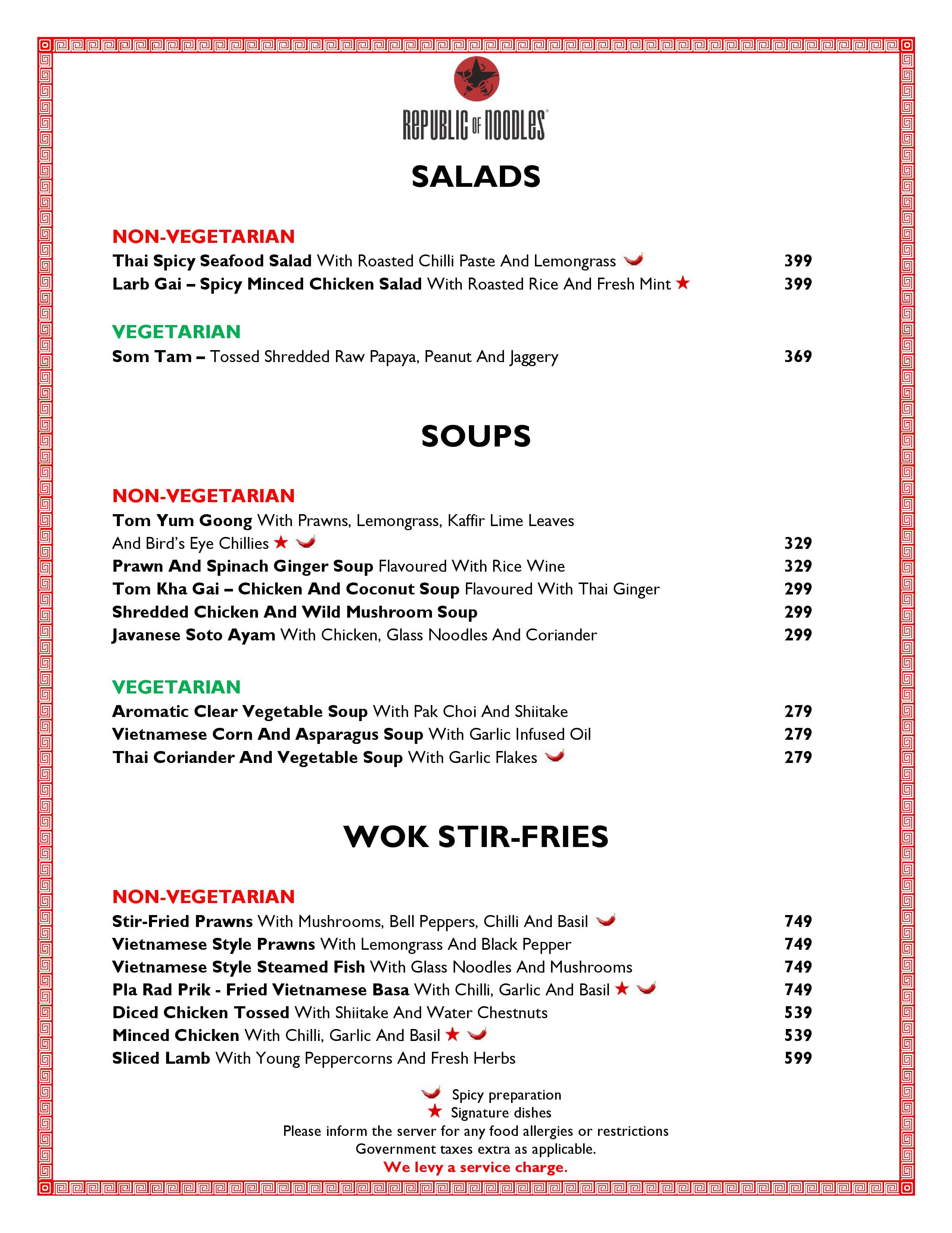 Republic of Noodles offers Pan Asian cuisine, featuring street food from Thailand, Vietnam, Singapore, Cambodia, Indonesia, and Myanmar.
