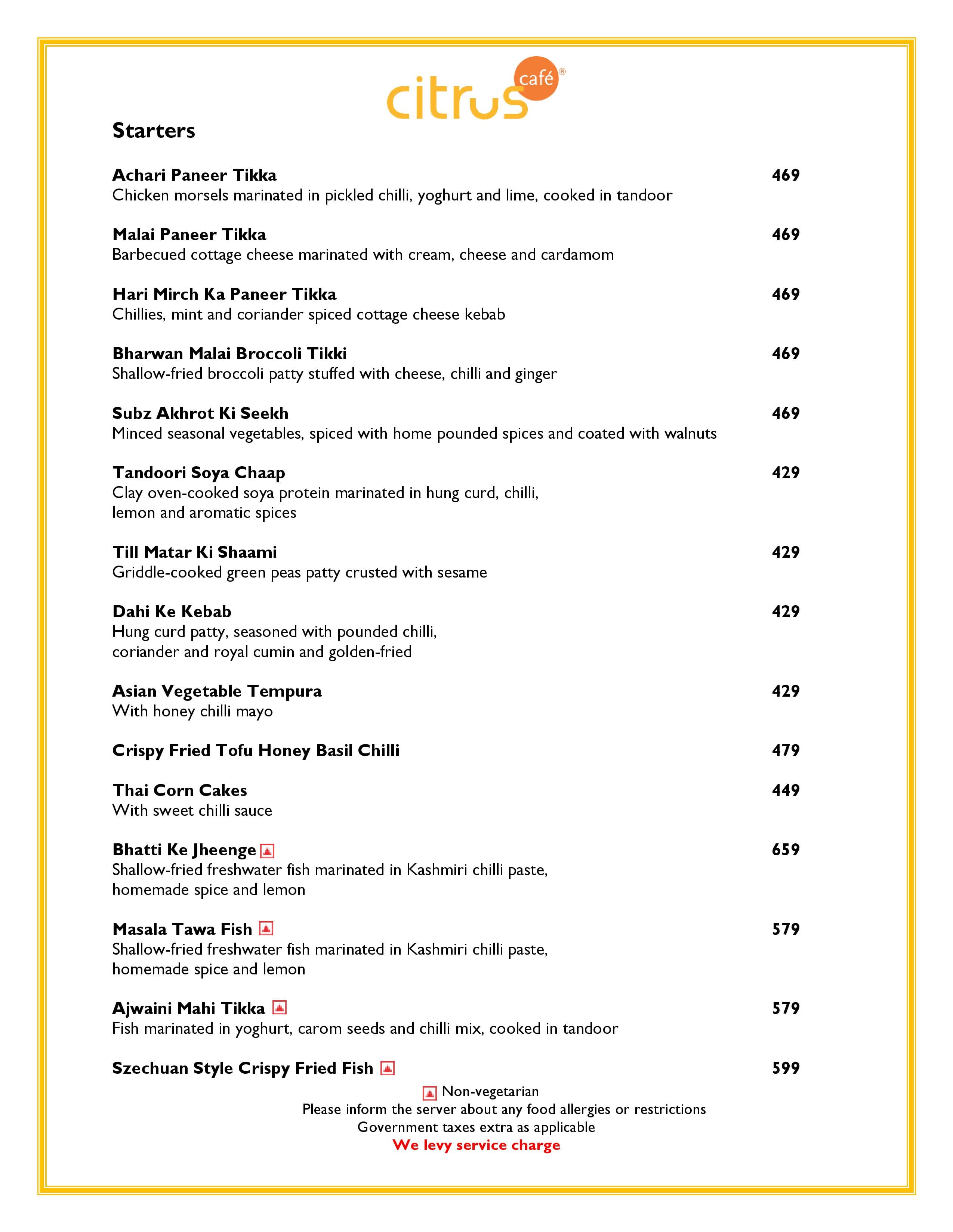 Citrus Café offers a multi-cuisine menu including Indian, European, American, and pan-Asian cuisine.